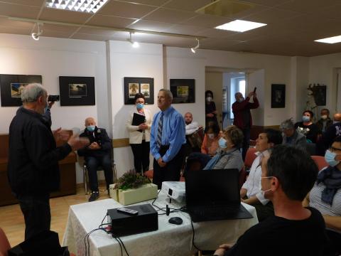 Utrinki z otvoritve fotografske razstave članov FKVK Mavrica Albince in Janeza Kosmača, Mimi Pollak in Rajka Pavliča z naslovom "Radomlje ob prelomu tisočletja" in 90. življenskem jubileju Janeza Kosmača.s projekcijo filmov dne 28.3.2022 v Kulturnem domu Radomlje.